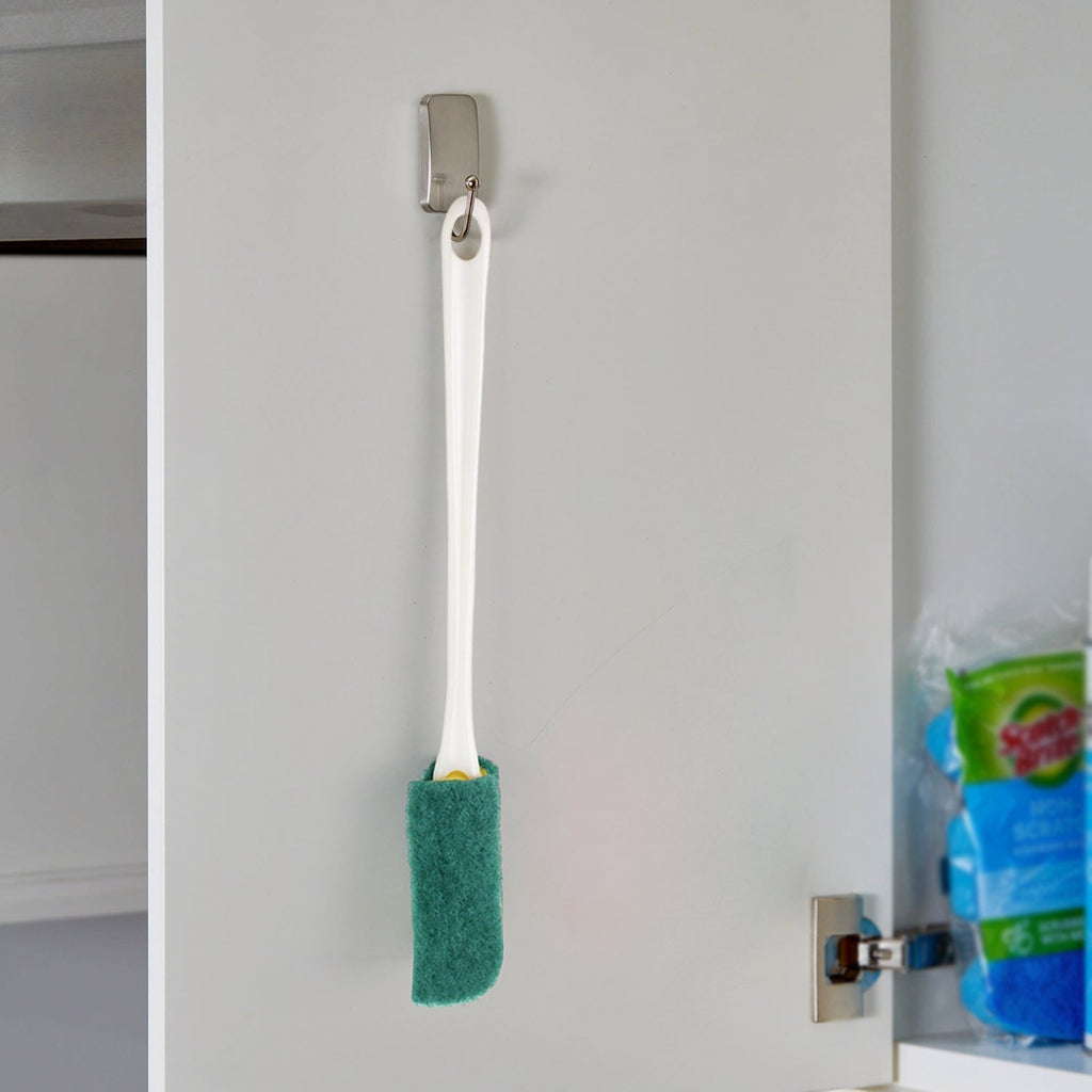 Crafted with a durable plastic handle and a dual-layer sponge and scrub pad head, this brush provides powerful scrubbing action for removing tough stains and residues without scratching your vessels. The angled head and extra-long ergonomic handle allow for better control, extended reach, and efficient cleaning.