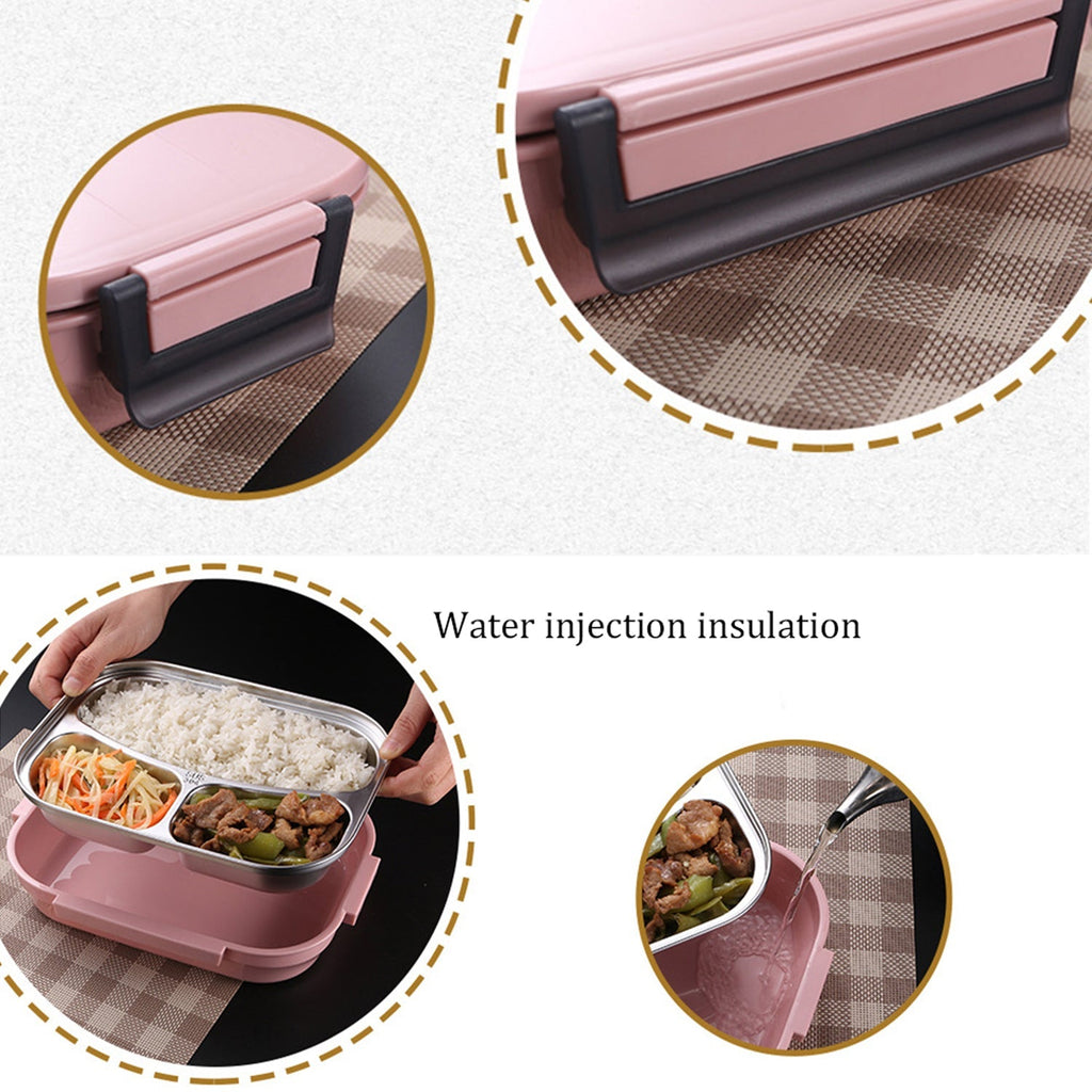 • This stainless steel tray is detachable, because another useful feature of this lunch box is that you can pour some hot water to heat the food before eating. This will keep the original taste of the food.